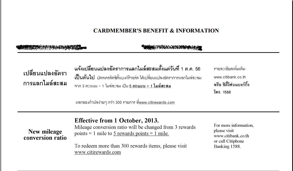 ข่าวร้ายสำหรับนักสะสมแต้มแลกไมล์ของ Citibank Reward