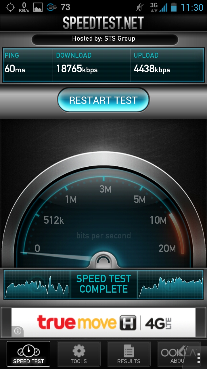 Speed Test Truemove H 3G+ เช้านี้ที่นครพนมครับ