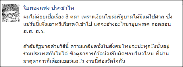 ทักษิณออกมาตีปี๊บดักคอ จะมีการล้มรัฐบาลภายในวันที่ 8 ต.ค. ที่จริงก่อนทักษิณพูดก็มีหมอดูหมอเดาทายทัก ว่ารัฐบาลดวงตกช่วงปลายปี