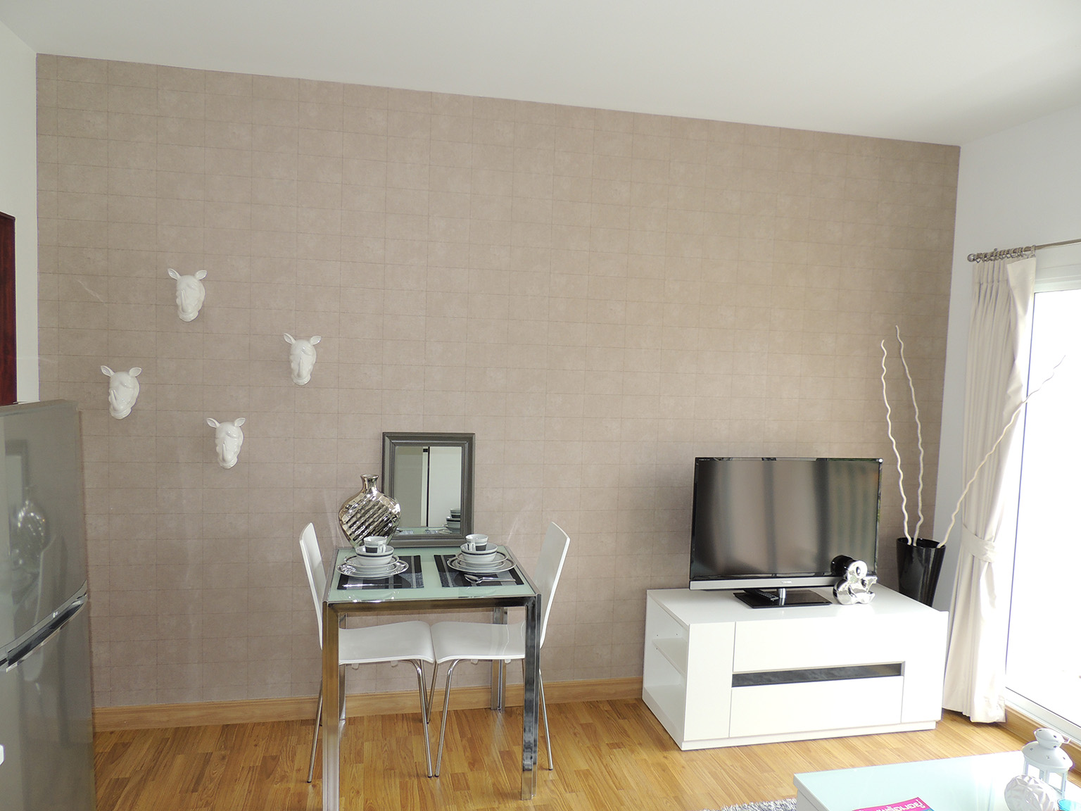 มองจากห้องนอนออกมาค่ะ ระยะดูทีวีประมาณ 2.40 ม. ของห้อง 35 ตรม.