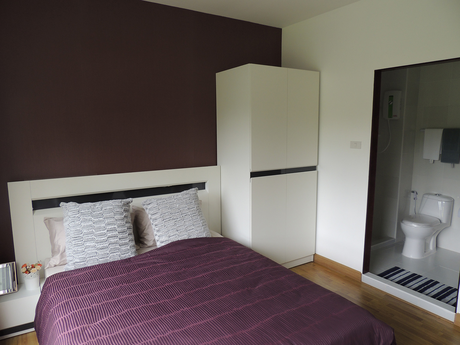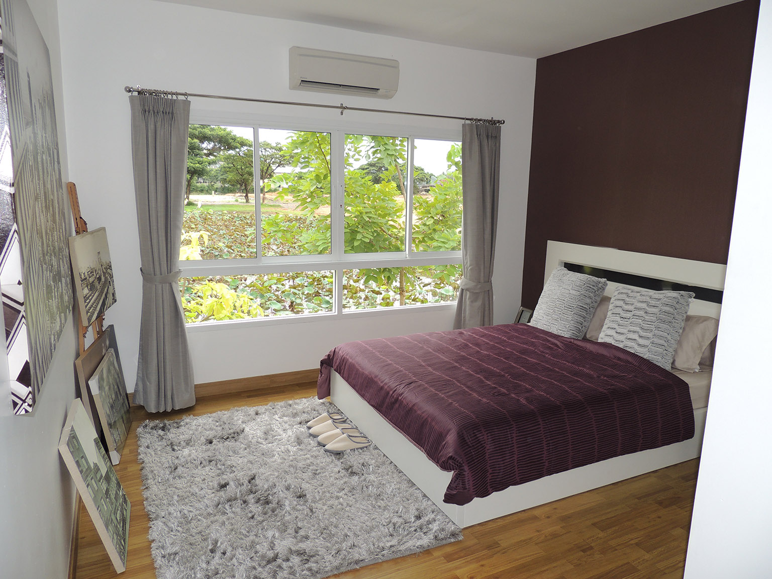 มาดูในห้องนอนค่ะเตียง 5 ฟุต วาง 6 ฟุตก็ยังได้นะเนี่ย พื้นที่ปลายเตียงบิ้วตู้เสื้อผ้าได้ยาวเลยค่ะ