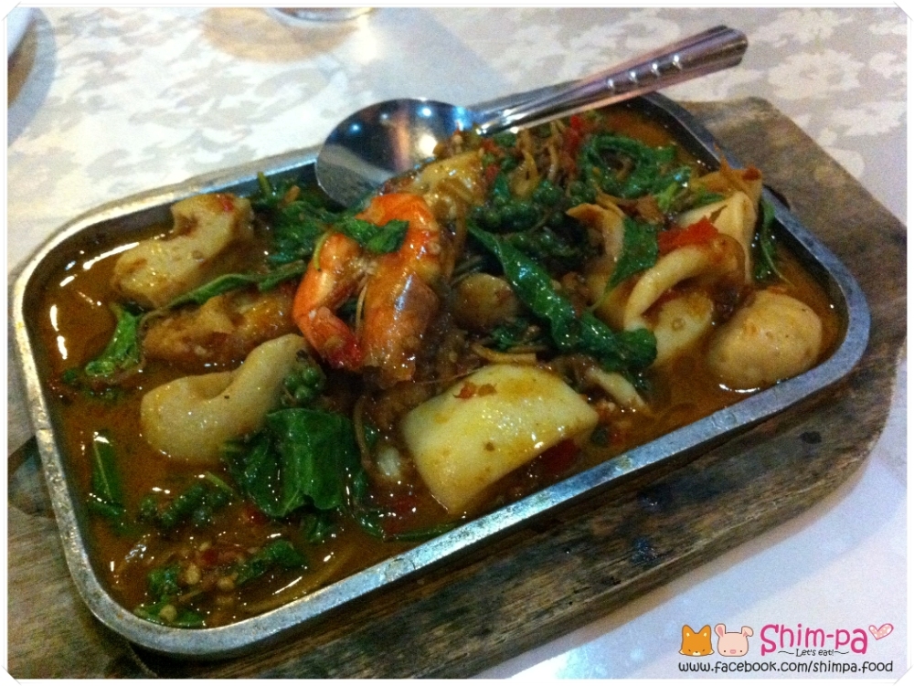 จานนี้ "รวมมิตรทะเลผัดฉ่า" เสริ์ฟมาในจานร้อน ฟู่ๆ