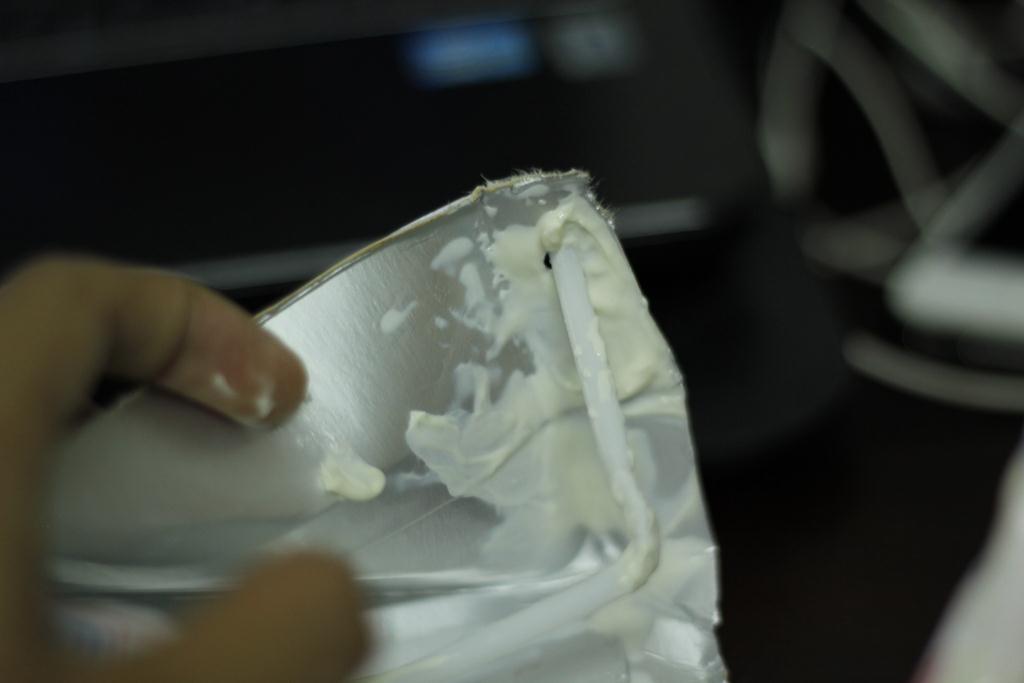 กินนมจืดหมดแล้ว มือไปโดนหลอดแล้วเป็นก้อนขาวๆ เลยลองแกะกล่องดู ปรากฏว่าเป็นก้อนด้านในแบบนี้ครับ
