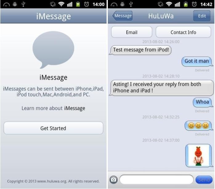 โดย iMessage Chat บนแอนดรอยด์ พัฒนาโดยนักพัฒนาที่ชื่อ Daniel Zweigart ซึ่งเมื่อผู้ใช้ทำการป้อน Apple ID และรหัสผ่านเข้าไป จะสามารถส่งข้อความหาเบอร์โทรฯและอีเมลที่มีการลงทะเบียน iMessage เอาไว้ได้ฟรี คล้ายๆกับบริการ BBM บน BlackBerry ซึ่งหลังจากที่มีการทดสอบตัวโปรแกรมแล้วด้วยชื่อบัญชีปลอม พบว่า สามารถทำงานได้จริง โดย Adam Bell นักพัฒนาโปรแกรมบน iOS รายหนึ่ง ได้กล่าวถึงบริการดังกล่าวว่า เป็นการหลอกล่อให้เซิร์ฟเวอร์ iMessage ของแอปเปิ้ล คิดว่าอุปกรณ์แอนดรอยด์ที่ส่งข้อความเข้ามานั้น เป็น Mac Mini เพื่อให้สามารถส่งและรับข้อความได้ โดย Jay Freeman นักพัฒนาแอพฯทางเลือกที่สามบน App Store (แอพฯ Cydia) เชื่อ แอพฯ iMessage Chat จะใช้ท่อข้อมูลส่งผ่านไปยังเซิร์ฟเวอร์ในประเทศจีน "นี่ไม่ได้หมายความแค่เพียง แอปเปิ้ลไม่สามารถบล็อกพวกเขาจาก IP address ได้เท่านั้น แต่พวกเขายังสามารถเก็บ 'ข้อมูลลับ' บนเซิร์ฟเวอร์ของพวกเขาได้อีกด้วย" Freeman ได้เขียนเอาไว้ใน Google Plus ของเขา