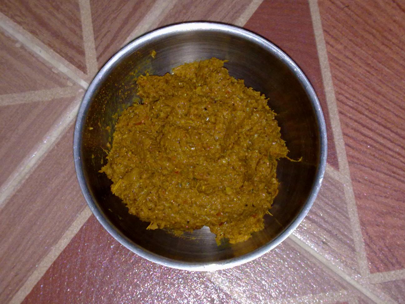 ตำให้ละเอียดดีแล้ว เติมผงมะสะหล่ากับน้ำมันมากๆหน่อยละลายพริกแกงไว้ แกงอุ๊บห้ามกลัวน้ำมันครับ ไม่งั้นไม่ใช่ของแท้ ผมเลือกใช้น้ำมันที่ดีๆหน่อยเป็นน้ำมันรำข้าว ทิ้งไว้ข้ามคืนยิ่งดี เข้าใจว่าน้ำมันจะช่วยละลายน้ำมันหอมระเหยของบรรดาเครื่องเทศทั้งหลายออกมา แกงจะหอมมากกว่าปกติครับ