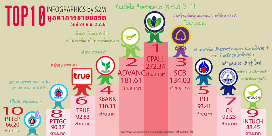 Top 10 มูลค่าการขายชอร์ต (Short Sell) วันที่ 24/9/2556