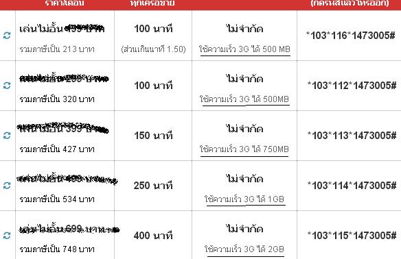 ใช้ความเร็ว 3G ได้ 500 Mb , 750 Mb , 1 Gb , 2 Gb