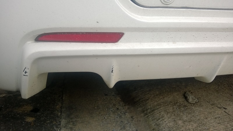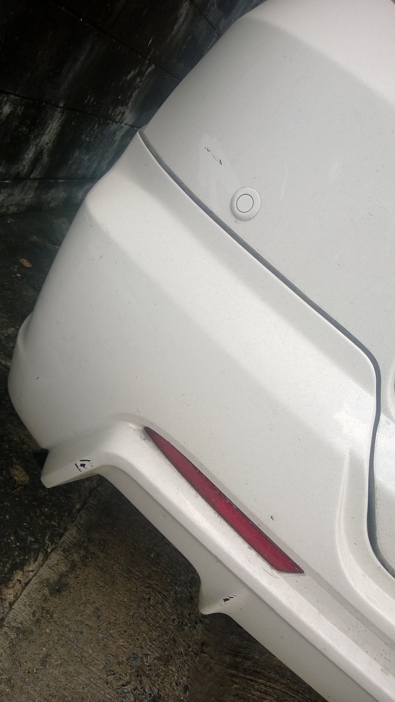 เรื่องของเรื่องคือเราเพิ่งเอารถออกจากศูนย์ จากการทำสีกันชนหลังเมื่อวันศุกร์ที่ผ่านมานี่เอง แล้วรอยนี่เราก็ไม่ได้เป็นคนทำ จอดอยู่ที่ทำงานแล้วก็มีคนถามว่าไปโดนอะไรมา ถึงสังเกตุเห็น เดาว่าน่าจะเกิดจากการ