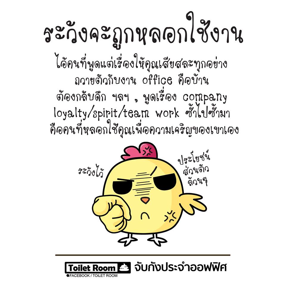 2. ระวังจะถูกหลอกใช้งาน จากคนที่พยายามบอกกับคุณ ให้เสียสละ ให้ทำงานเพื่อบริษัท ทำงานดึกดื่นแค่ไหนก็ต้องทำ เพื่อผลประโยชน์กับบริษัทเป็นหลัก แต่จริงๆแล้ว ผลประโยชน์เหล่านั้นเข้าตัวเองล้วนๆ