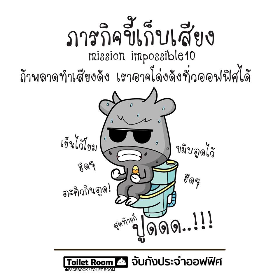 4. ภาระกิจขี้เก็บเสียง ถ้าพลาดทำเสียงดังมีหวังโด่งดังไปทั้งออฟฟิศจ้า กลั้นสุดฤทธิ์ ตะคริวจะกินตูดอยู่ละ นี่มันคือการปลดทุกข์จริงป่ะเนี่ย มันทุกข์กว่าเดิมชัดๆ จะทำธุระส่วนตัวก็ต้องมานั่งกังวลจะอับอายขายหน้าประชาชีอีก