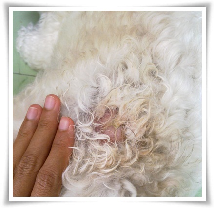 ทุกวันที่เล่นกันบางครั้งก็มีแหย่กันแรง ทะเลาะ ข่วน ขู่บ้าง ดูแล้วทั้งสองจะสนุกกับการเล่นด้วยกันอย่างมาก เราก็ไม่เคยเห็นรอยกัดหรือมีแผลอะไรนะ แต่ครั้งนี้มีแผลเล็กๆ เลยคิดว่าเดี๋ยวคงหาย ไม่รู้ว่าไปโดนอะไรมา แต่คิดว่าคงโดนจัสโก้กัด มูมู่เลียแผลบ่อย แผลเริ่มใหญ่ขึ้น วันนี้วันที่ 4 เริ่มมีหนองแล้วค่ะ