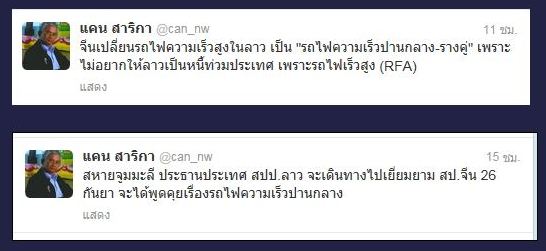 แคน สาริกา กับการบิดเบือนเรื่องลาวจะไปยกเลิกการทำรถไฟความเร็วสูง