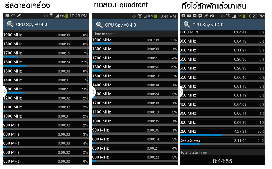 ปรากฏว่า มัน deep sleep กับ 250 MHz ตลอดเลย ลอง restart แล้วลอง test bench mark อีกที ก็เป็นตามรูป