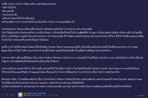 เพิ่งเห็นวันนี้ว่า เขาตอบกระทู้แปลกๆ copy มาทั้งประโยค แล้ววางตามกระทู้ต่างๆ ที่ถามเรื่อง notebook dell