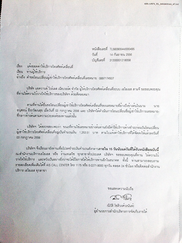 ถ้าเปลี่ยนเจ้าของหมายเลข คือผมก็เสียค่าบริการทุกเดือนนะครับ เลยกำหนดบางครั้งเพราะบิลส่งไปบ้านน้องผม แล้วเขาไม่ยอมไปทำธุระให้เลยทำให้มีการล่าช้าบ้าง