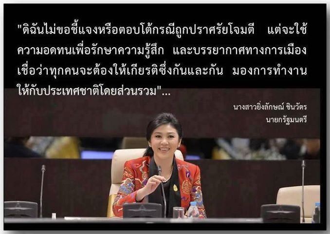"ตลอดระยะเวลา 2 ปีที่ผ่านมารัฐบาลริเริ่มโครงการกองทุนพัฒนาบทบาทสตรีที่ประกอบด้วยคณะกรรมการระดับชาติและเครือข่ายภาคประชาชน ลงลึกสู่ระดับจังหวัด ตำบล และชุมชน หวังให้ทุกคนมีส่วนร่วมพัฒนาสตรีไทย โดยเฉพาะในกลุ่มที่ด้อยโอกาสให้สามารถใช้ชีวิตได้อย่างสมศักดิ์ศรี มีคุณภาพชีวิตและรายได้ที่ดีขึ้น นอกจากนี้ยังต้องเข้าถึงสิทธิพื้นฐานของสตรีไทยที่พึงได้รับอย่างเท่าเทียม ขอย้ำว่าสตรีไทยเก่งไม่น้อยกว่าชาติใดเลย ขอเพียงแต่สังคมให้โอกาสและช่วยกันพัฒนาต่อยอดความคิดรวมไปถึงคุณงามความดีของผู้หญิง" นายกฯหญิงกล่าว