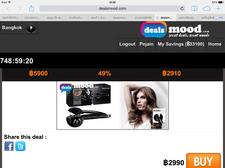 แจ้งข่าวพบเจอดีล เครื่องทำลอนผม Babyliss pro perfect curl เพียง 2990 บาท