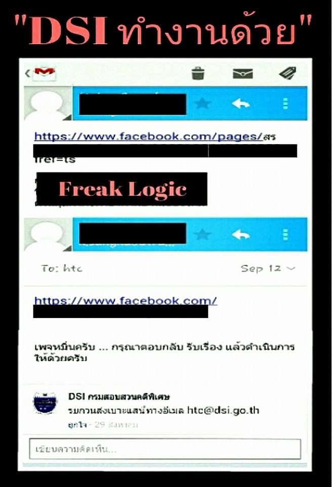 ได้รับแจ้ง จากผู้ใช้งานอินเตอร์เน็ตท่านหนึ่ง ว่าเดือนก่อน ตอนกลางคืน ท่านเปิดเจอเฟสบุ๊ค ที่มีภาพหมิ่นฯ ในหลวง ท่านจึงดำเนินการโพสต์ แจ้งเบาะแสไปยังหน้าเฟสฯ ของ DSI เช้าวันถัดมา มีโพสต์คอมเม้นท์ ตอบกลับ แจ้งว่า ให้ท่านแจ้งเบาะแสดังกล่าว ทาง email ที่ htc@dsi.go.th ท่านจึงแจ้งไปยัง email ดังกล่าว ตามภาพ