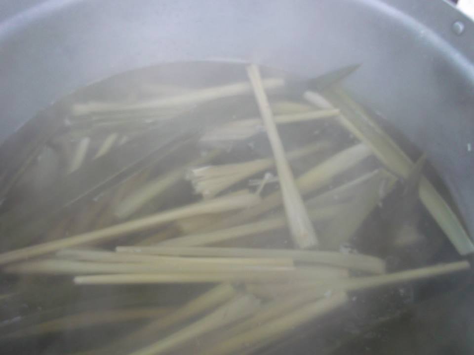 ...ต้มตระไคร้ ใบเตยพร้อมกัน พอเดือดตักทิ้ง ใส่น้ำตาลทรายกับเกลือซักเล็กน้อย...