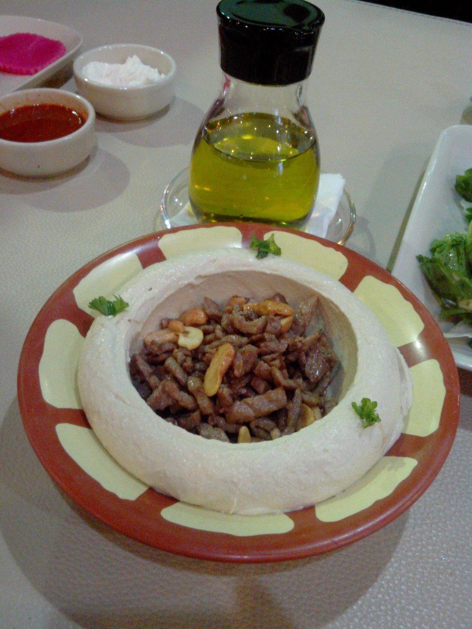 เป็นถั่วขาวบดกะอะไรไม่รู้ รสออกเปรี้ยวๆ มันๆ ตรงกลางเป็เนื้อแกะผัดกะถัว ออกเค็มๆ กินกะขนมปังพีต้า เราเคยกินที่รีสอร์ตแห่งหนึ่งที่กาญจน์มันไม่เปรี้ยวอะ ชอบแบบนั้นมากกว่า