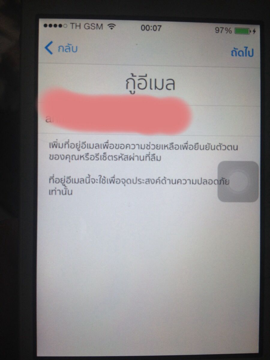 ทำอย่างไรดีค่ะลง iOS 7.2 ปรากฏว่า หลักกรอก กู้อีเมล์ หลังจากนั้นก็นิ่งไม่ไปไหนเลยค่ะ
