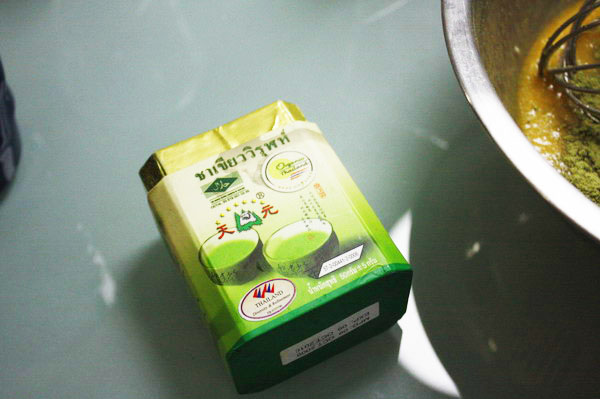 จากนั้น เทกรีนทีที่เตรียมไว้ลงไปค่ะ จะค่อยๆร่อนหรือเทพรวดแล้วแต่ใช้ผงแบบไหน ถ้าของยี่ห้อที่เรใช้ ละลายง่ายค่ะแต่ จะเด่นตรงรสขม ถ้าชอบแบบฮาร์ดๆแต่ใส่หนักมือกันไปค่ะ เรใส่ไปเต็มเหนี่ยว เรงวดนี้ลองใช้ของยี่ห้อนี้ค่ะ