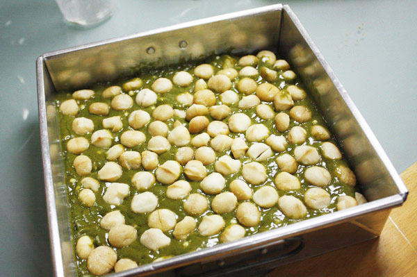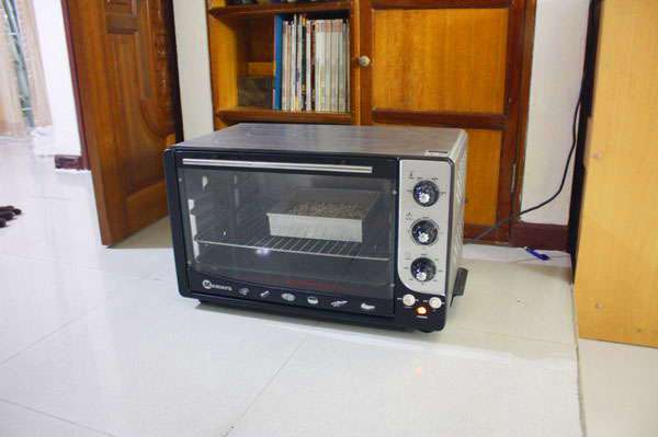 ตอนอบไฟล่างก่อนนะคะ ค่อยมาใช้ไฟบนทีหลัง ระวัง หน้าถั่วแมคคาเดเมียไหม้เอาง่ายๆ