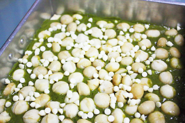 และที่เพิ่มความไฮโซตรงว่า ใส่แมคคาเดเมียเพียวๆ 250กรัม และช็อกโกแล็ตขาวเพิ่มความสะใจไปอีก.....แบบลืมชั่งลืมตวง(อ่าวอีนี้)