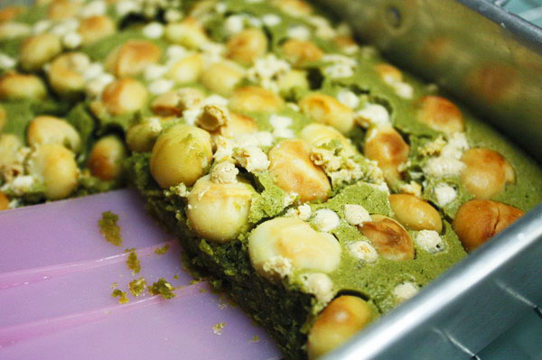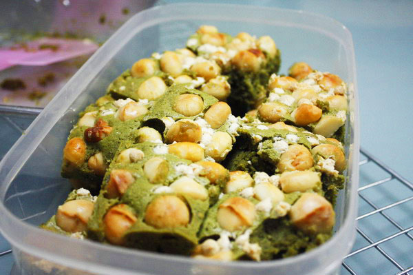 [CR] [CR]รีวิวพยูนบ้าน Q (' w ' ๐Q อยู่บ้านอย่านิ่งดูดายทำขนมง่ายๆดูไฮโซกับ "Matcha Macadamia Brownies" กันคร๊า ~