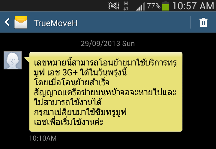 ย้ายมาทรูเอชแล้ว แต่ได้รับข้อความว่าพรุ่งนี้จะโอนย้ายไปทรูเอชให้