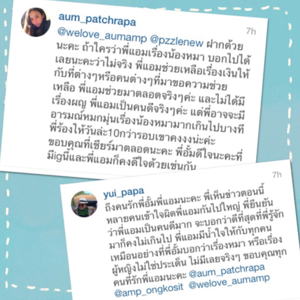 ถึงทุกคนที่เข้าใจผิดว่า คุณแอม ไม่รักหมา ไม่ใช่นะคะ อั้ม ออกมาชี้แจ้งแล้วว่าความจริงเป็นยังไง เลยอยากจะบอกให้ทุกคนได้ทราบเหตุผลที่แท้จริงจากใจคุณอั้มเอง