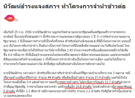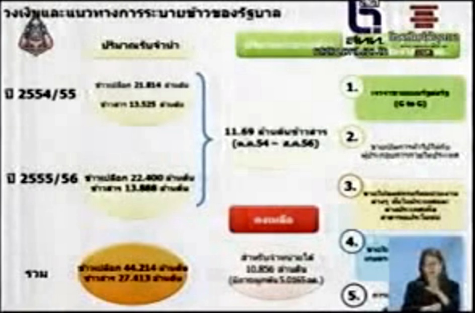 สรุปคือระบายข้าวไปได้แล้ว 11.7 ล้านตัน มีภาระผูกพันอีก 5 ล้านตัน เหลือที่ยังต้องระบายอีก 10.8 ล้านตัน รวมเป็นประมาณ 27.4 ล้านตัน
