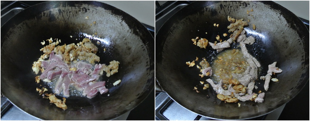 เร่งไฟให้ร้อนจัด ใส่เนื้อวัวลงไปผัด