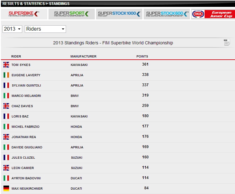 สวัสดีครับ จริง ๆ ไม่เคยดูล่ะครับ แต่เห็นกระทู้ล่าง ของคุณ ไออิ update motogp เลยลองเข้าไปดูเล่น ๆ ในเวบของ worldsbk.com ถึงแม้จะเป็นรายการที่ไม่ดังเท่า motogp แต่ทีมแข่ง โรงงาน เยอะกว่า motogp มาก แ