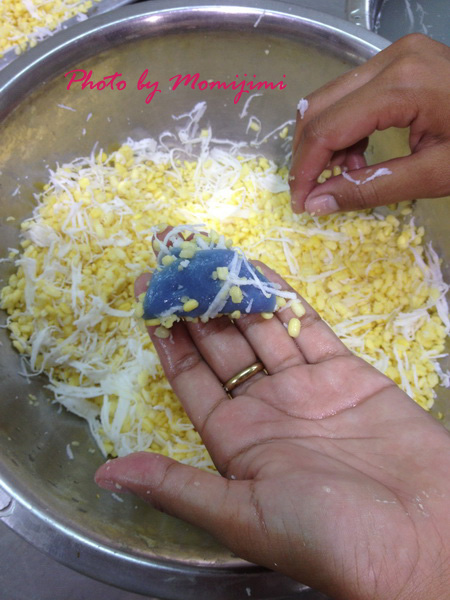 จากรูปเพื่อให้มีขนาดเท่าๆกันปั้นก้อนตั้งแต่แรกให้ขนาดเท่ากัน ทำชิ้นเล็กๆๆๆพอดีคำ