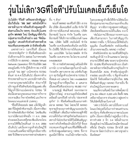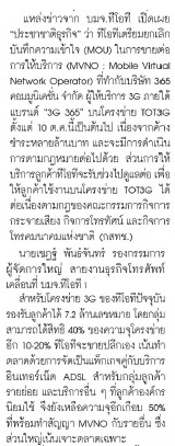 30 กันยายน 2556 แหล่งข่าวTOT3Gชี้!! เลิก MVNO กับ 365 เหตุค้างชำระหลายล้านบาท และจะดำเนินการฟ้องต่อไป // กลุ่มจัสมิน และ บุญเติม เตรียมรวมวง MVNO TOT3G รายต่อไป