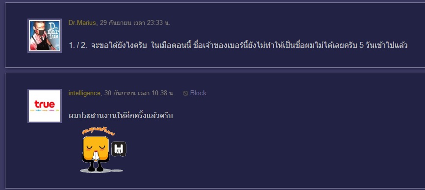 "ผมไม่ได้หมายถึง ปัญหา true i service ครับ ผมหมายถึง เมือไรเบอร์ 091xxxxxx จะเป็นชื่อผมสักทีครับ"