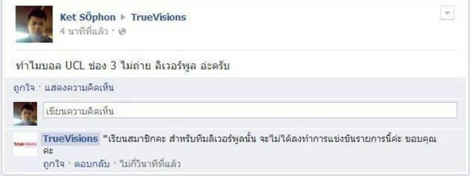 เมื่อมีคนถามไปยังเพจทรูวิชั่นถึงการถ่ายทอดสดยูฟ่าของช่อง 3