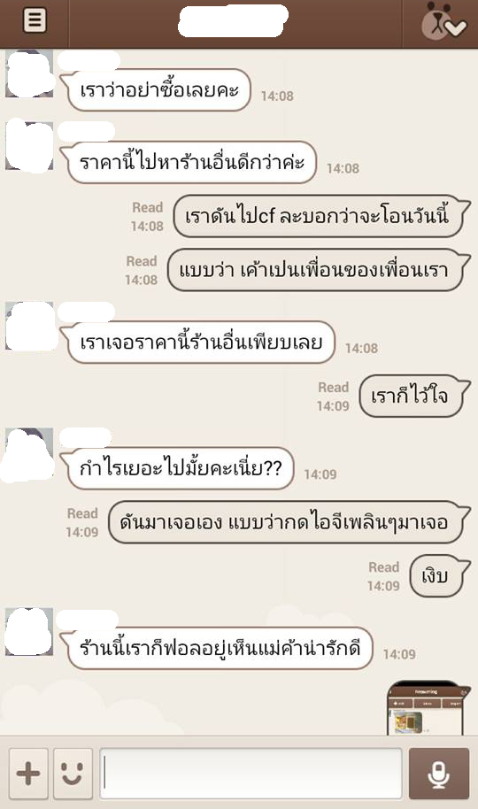 เราเลยตัดสินใจที่จะไม่ไปบอกเขา ว่าฉันรู้นะว่าเธอหลอกขายของฉันแพง เธอมันแสบมากๆ หลอกให้ฉันไว้ใจ