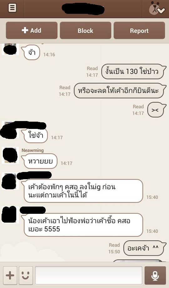 ด้วยความสงสัย และเริ่มกระวนกระวาย เลยไปดูคอมเม้นของผญ.คนที่ถามถึงบรอนเซอร์ ผญ.คนนี้ทิ้งไลน์ไว้ด้วย