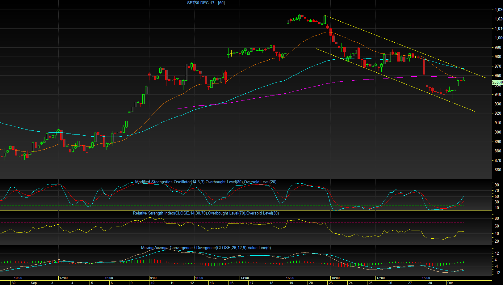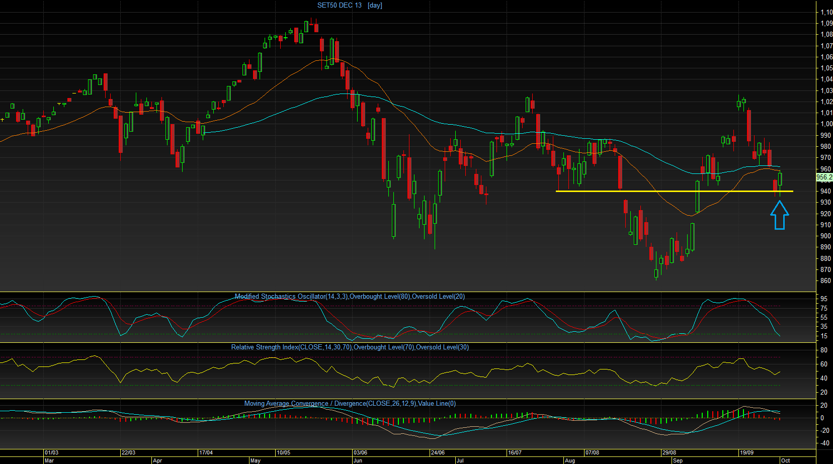 ทำให้ตรงนั้นกลายเป็นจุด Bottom และทำให้ Index Rebound ได้แรง ใต่ระดับขึ้นมาเรื่อยๆ มีบางช่วงขึ้นไปทะลุ 958 แต่ยืนไม่ได้