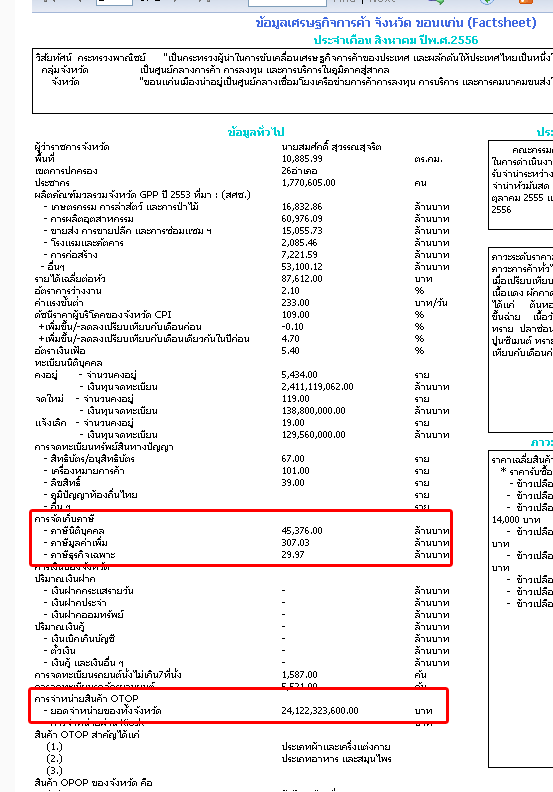 มาดูของขอนแก่น ตัวเลขการเก็บภาษีประจำเดือนและยอดขายสินค้า