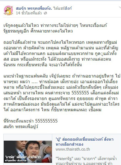 เจ๊ครับ โปรดระมัดระวังในการโพสต์ด้วย เพราะจะผิดคำพูดที่เคยให้ไว้ พรรคเพื่อไทยจะย้อนศรได้