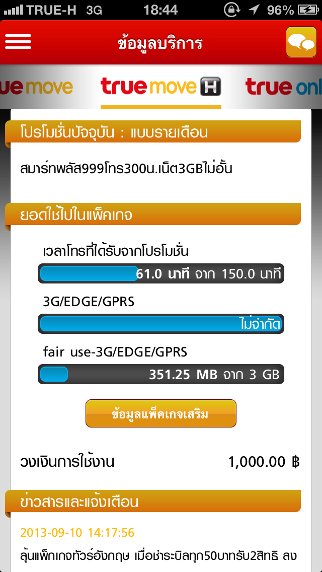 True-H ตรวจสอบข้อมูลการใช้ดาต้าย้อนหลัง