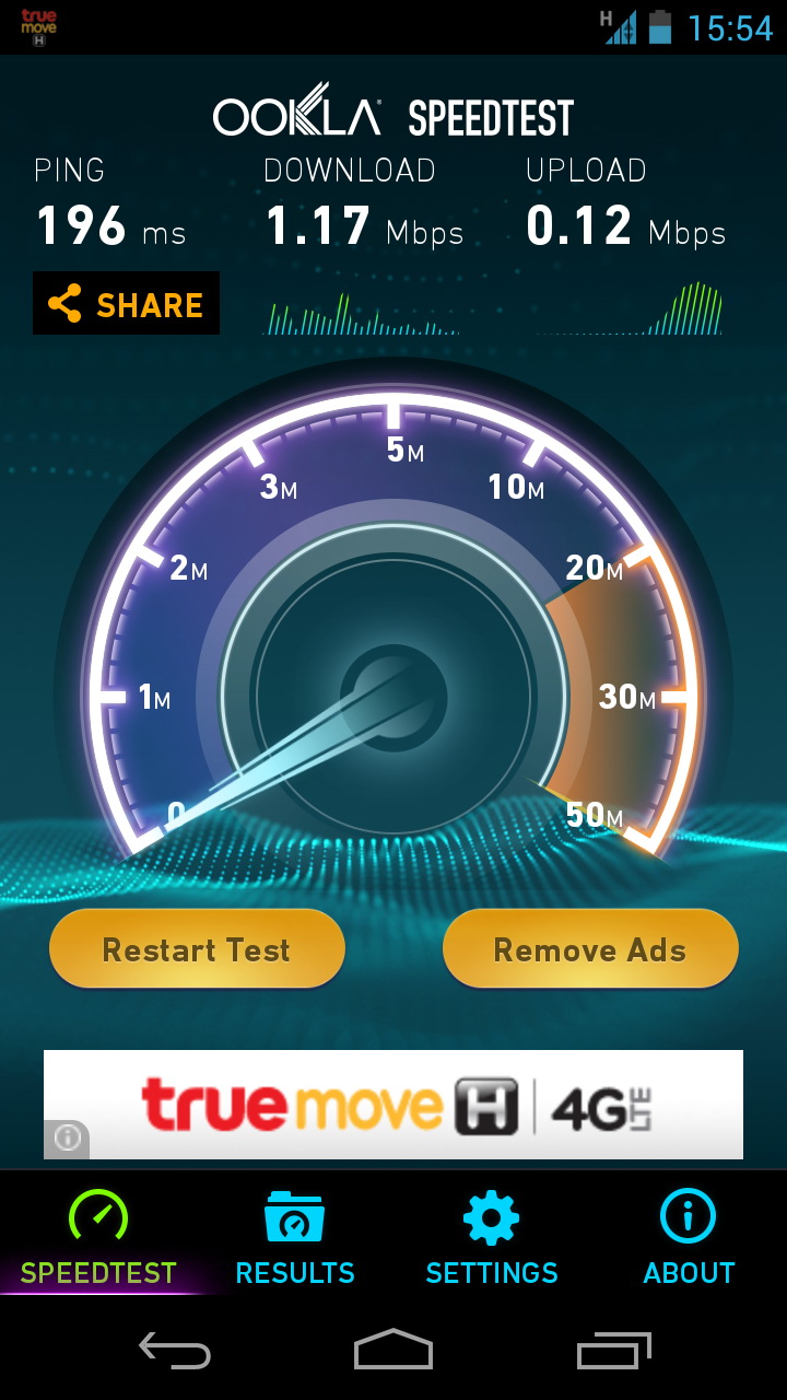 ยอดหลังไปเมื่อเดือนมีนาคมผมมีปัญหากับ AIS 3G 900 Mhz เลยได้เปิดเบอร์ของ TrueMove H มาและใช้ได้ดีตลอดมาจนกระทั้งปัจจุบันเริ่มทนไม่ไหวเหมือนกับช่วง AIS 3G 900 Mhz ที่มีปัญหาก็คือช้าอย่างวันนี้ผมไปเดินเล่นที่หน้า CTW ช่วงเวลาประมาณ 3-4 โมงเย็น Speed ที่ test ได้คือไม่เกิน 3M เลยครับ หรือว่าอย่างนี้ผมควรกลับไปอยู่กับ AIS 3G 2100 ดีกว่าครับ