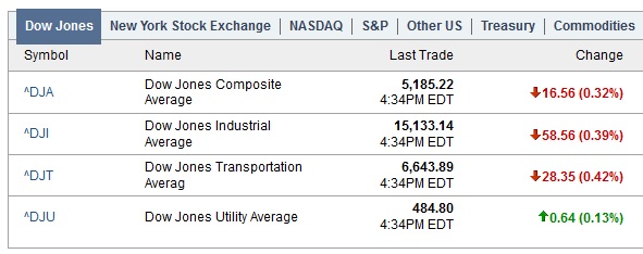 ตลาดหุ้นนิวยอร์กปิดลบเมื่อคืนนี้ (2 ตุลาคม 2556) ดัชนีเฉลี่ยอุตสาหกรรมดาวโจนส์ปิดที่ 15,133.14 จุด ลดลง 58.56 จุด หรือ -0.39% ดัชนี S&P500 ปิดที่ 1,693.87 จุด ลดลง 1.13 จุด หรือ -0.07% ดัชนี Nasdaq ปิดที่ 3,815.02 จุด ลดลง 2.96 จุด หรือ -0.08%