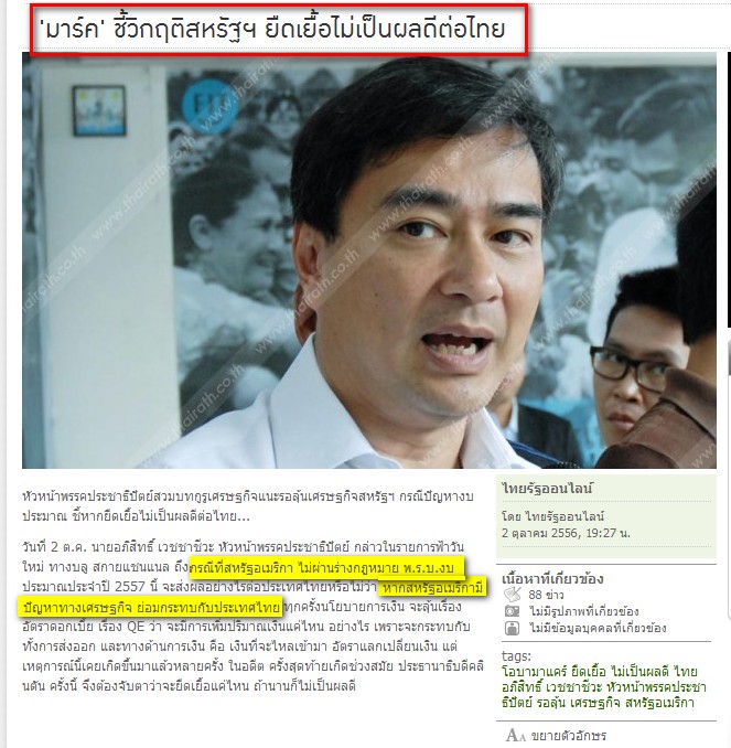 มาร์คชี้วิกฤติสหรัฐฯยืดเยื้อไม่เป็นผลดีต่อไทย...นั่นสิ แล้วทำและพูดทำไม ขนาดของที่อื่นยังกระทบ แล้วของไทยเอ็งยื้อทำไม
