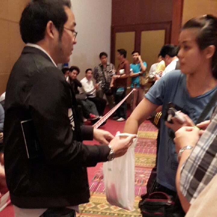 เจ้าหน้าที่ samsunh แจกน้ำดื่ม