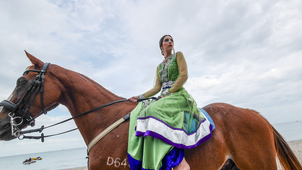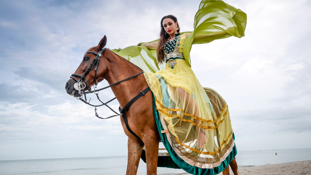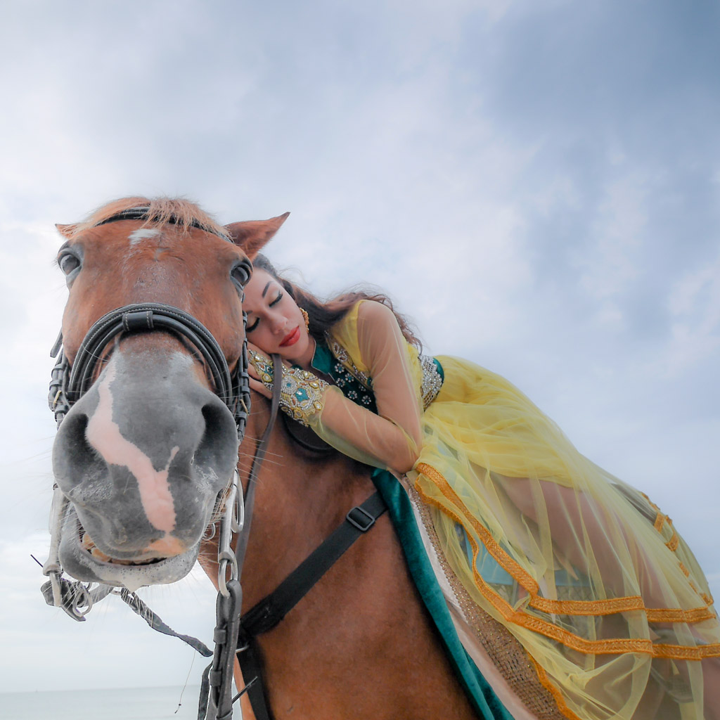 นางแบบชุดเขียวคนนี้ เธอกลัวม้า จริงๆ มีรูปที่เธอหน้าเหวอกลัวม้าอยู่ด้วย แต่เห็นมันซ้ำๆ กันเลย คัดออก