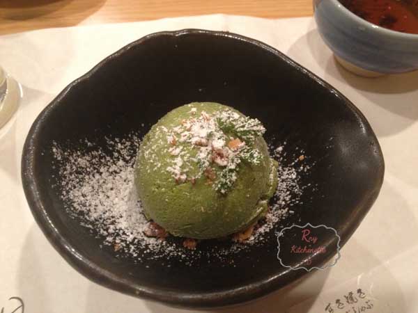 อันนี้เป็นของหวานตบท้าย ไอศรีมชาเขียวโรยถั่วกับน้ำตาลไอซิ่ง อร่อยเหาะ